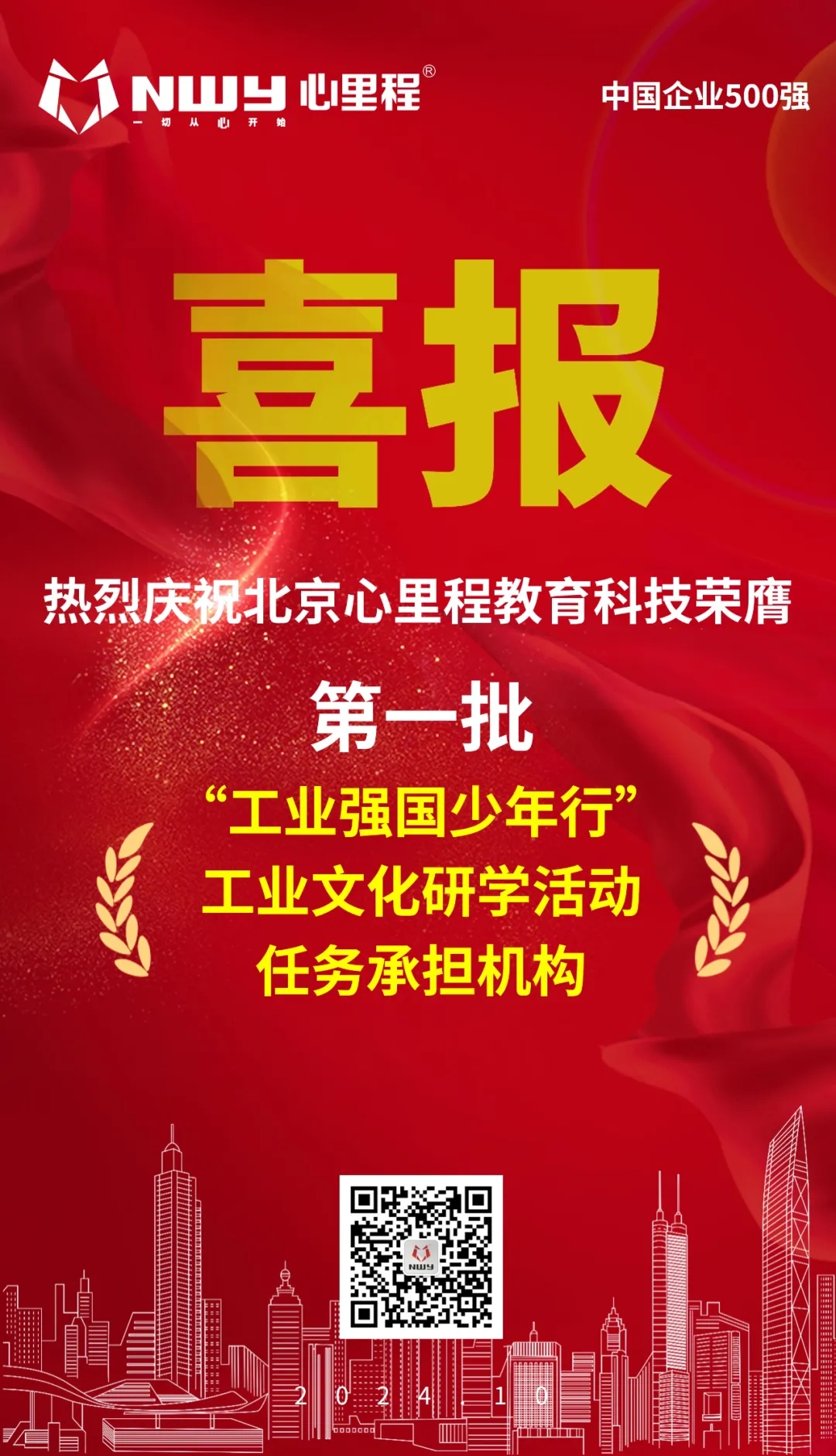 祝賀北京心里程教育科技有限公司入選工信部首批“工業(yè)強國少年行”工業(yè)文化研學活動任務(wù)承擔機構(gòu)