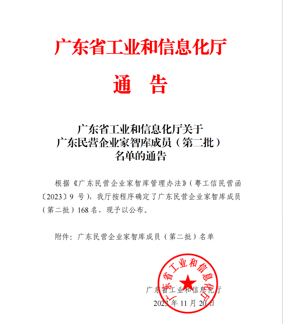 彭國遠(yuǎn)董事長當(dāng)選廣東省工信廳【廣東民營企業(yè)家智庫成員】