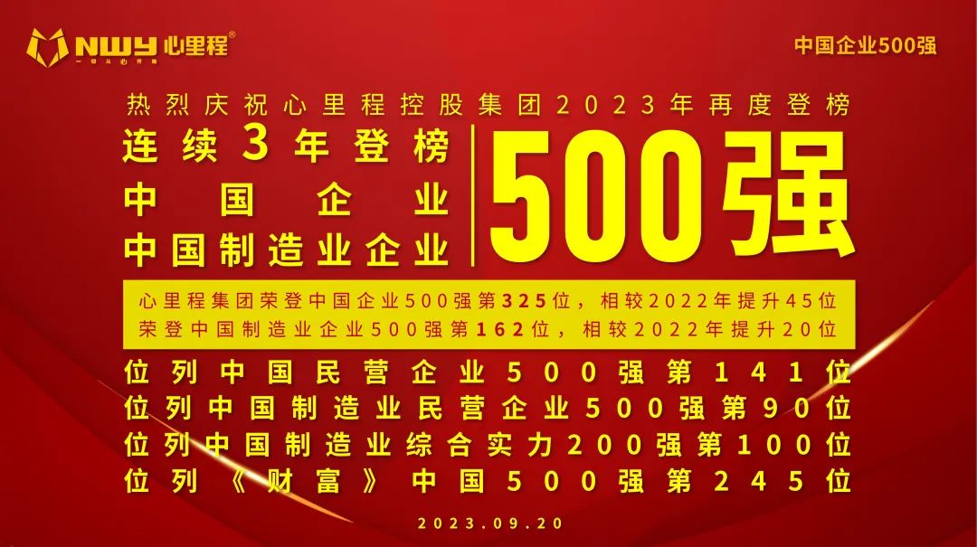 連續(xù)六年登榜中國民營企業(yè)500強(qiáng)!心里程集團(tuán)排名上升29位!(附全榜單)