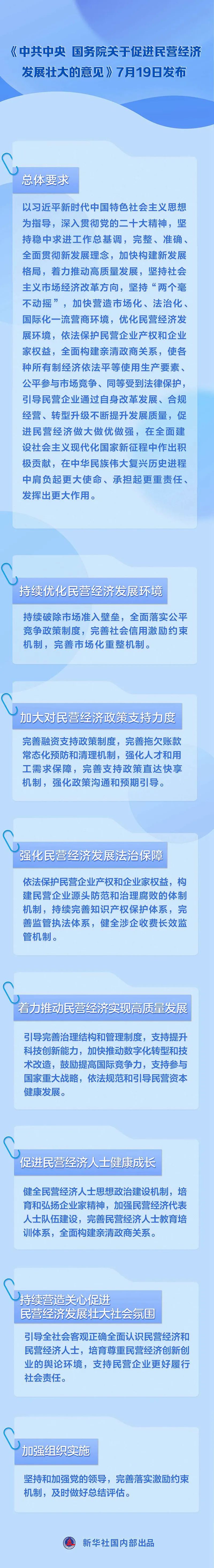 民營經(jīng)濟是推進中國式現(xiàn)代化的生力軍,是高質(zhì)量發(fā)展的重要基礎(chǔ),是推動我國全面建成社會主義現(xiàn)代化強國、實現(xiàn)第二個百年奮斗目標的重要力量。為促進民營經(jīng)濟發(fā)展壯大,現(xiàn)提出如下意見。