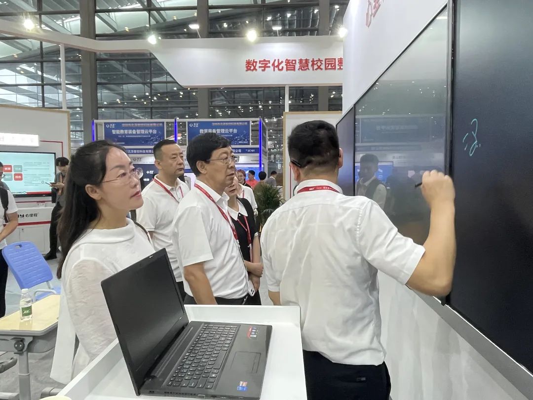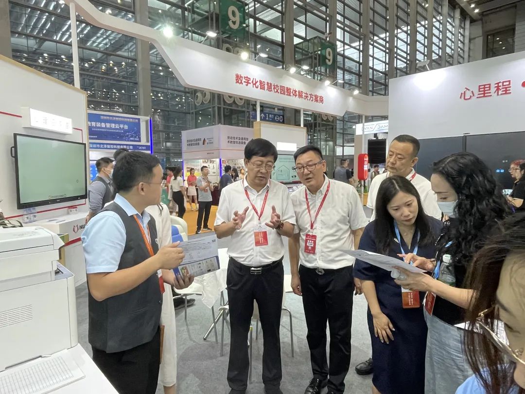 在心里程展區(qū),馮仁剛常務(wù)副總裁陪同臨夏考察團(tuán)參觀體驗了心里程自主研發(fā)的“5G+智慧教育整體解決方案”的核心產(chǎn)品,其中包括心里程“智慧科技幼兒園”“智慧校園”“智慧體育”“校企融合專業(yè)共建綜合解決方案”等幾個部分,涵蓋AI校園智能健康系統(tǒng)、AI助教?周學(xué)情、校園空氣凈化解決方案、心理咨詢室、家校共育、智能安全用電、可視電話、職教高校解決方案等前沿信息化教育產(chǎn)品、方案。