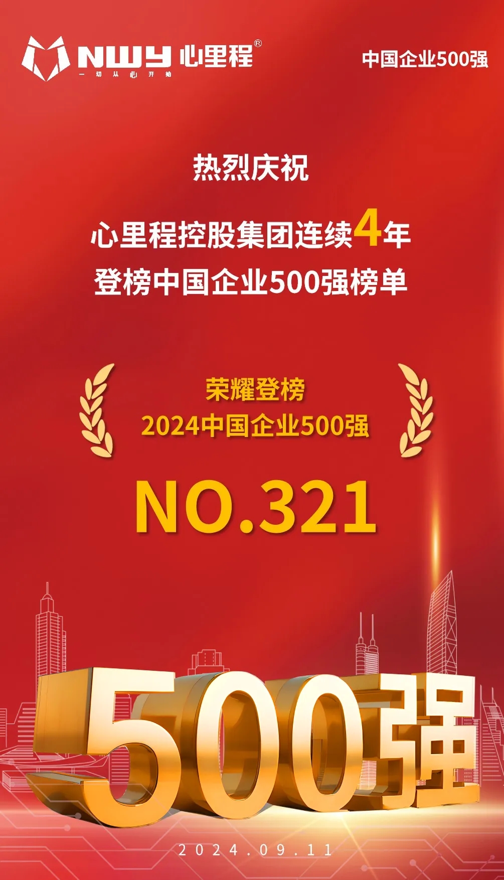9月11日,在2024中國500強企業(yè)高峰論壇上,中國企業(yè)聯(lián)合會、中國企業(yè)家協(xié)會連續(xù)第23次向社會發(fā)布了“中國企業(yè)500強”榜單。心里程集團在全國各級政府及社會各界的關心、支持和幫助下,通過全體心里程人的共同努力與不懈奮斗,以卓越的表現(xiàn)和強勁的增長動力再次榮耀登榜,并從去年的325位上升至第321位。這一成就不僅彰顯了集團的綜合實力與市場地位的顯著提升,更預示著心里程控股集團在未來發(fā)展中將擁有更加廣闊的空間與無限可能。