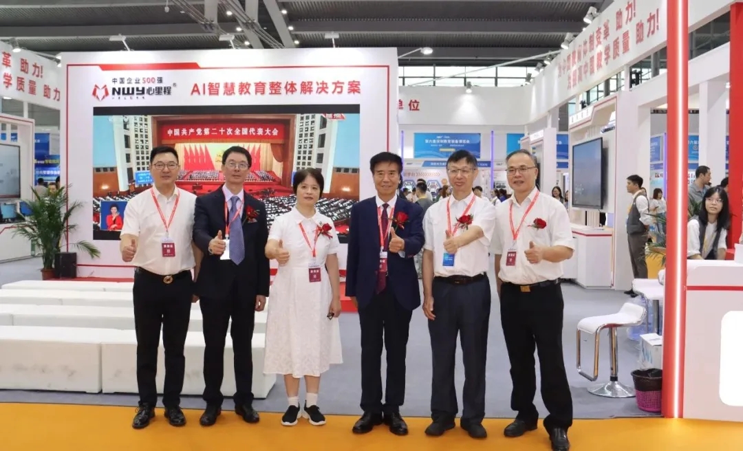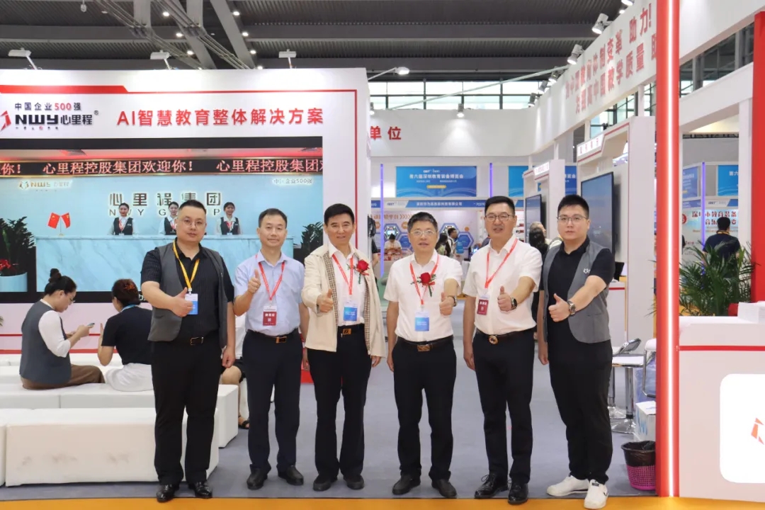 廣東省教育裝備中心張建鋒(右一)蒞臨心里程展位參觀指導(dǎo)