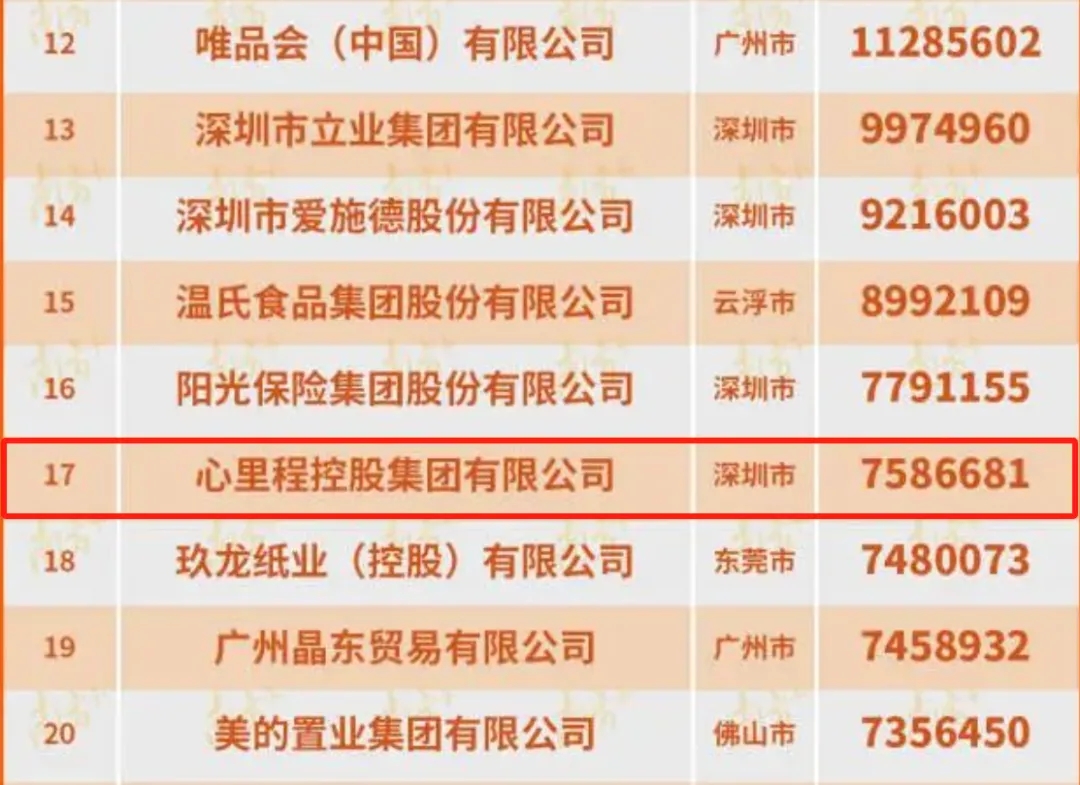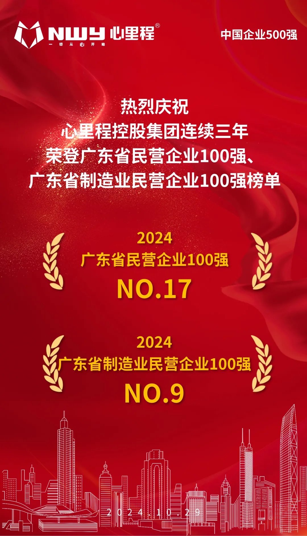 心里程集團(tuán)榮登“2024廣東省民營企業(yè)100強(qiáng)”榜單第17位