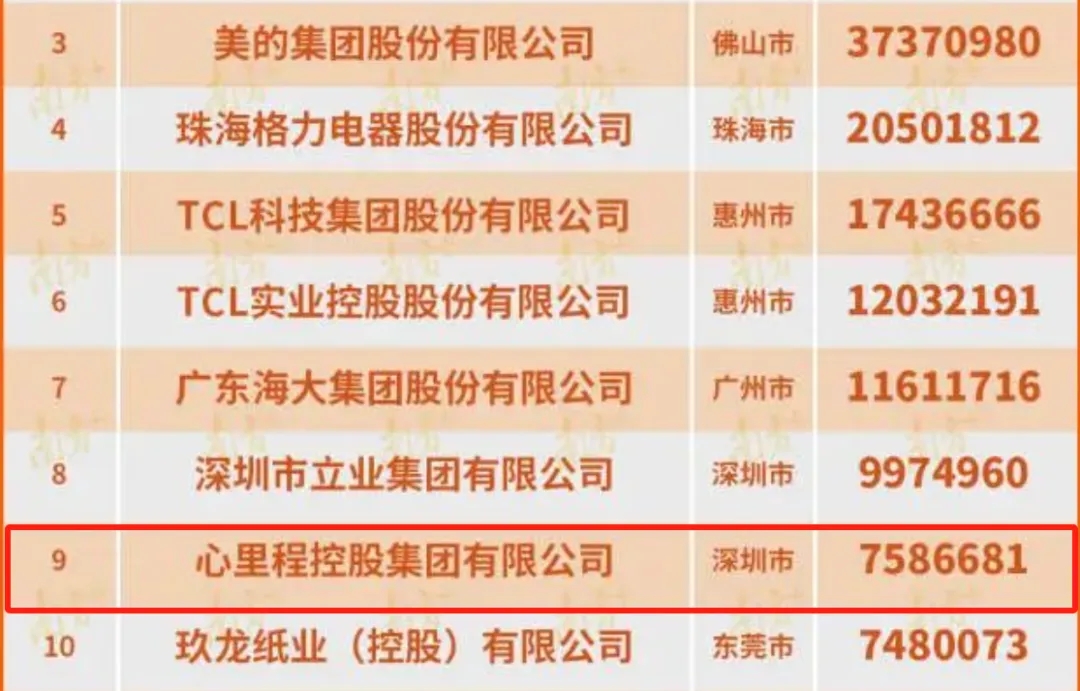 心里程集團(tuán)榮登“廣東省制造業(yè)民營企業(yè)100強(qiáng)”榜單第9位