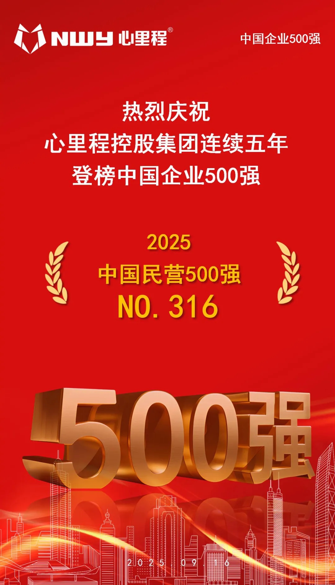 9月15日,中國企業(yè)聯(lián)合會、中國企業(yè)家協(xié)會連續(xù)第24次向社會發(fā)布了“中國企業(yè)500強(qiáng)” 榜單。心里程集團(tuán)憑借卓越的綜合實(shí)力和穩(wěn)定的業(yè)績表現(xiàn),再度榮登該榜單,位列第316位,較去年提升5位。在此之前,心里程控股集團(tuán)還以第137位的綜合成績連續(xù)八年榮登“中國民營企業(yè)500強(qiáng)”榜單,較2024年提升1位;同時(shí),集團(tuán)憑借在制造業(yè)領(lǐng)域的深耕突破,以第97位的排名連續(xù)三年躋身“中國制造業(yè)民營企業(yè)500強(qiáng)”百強(qiáng)序列。