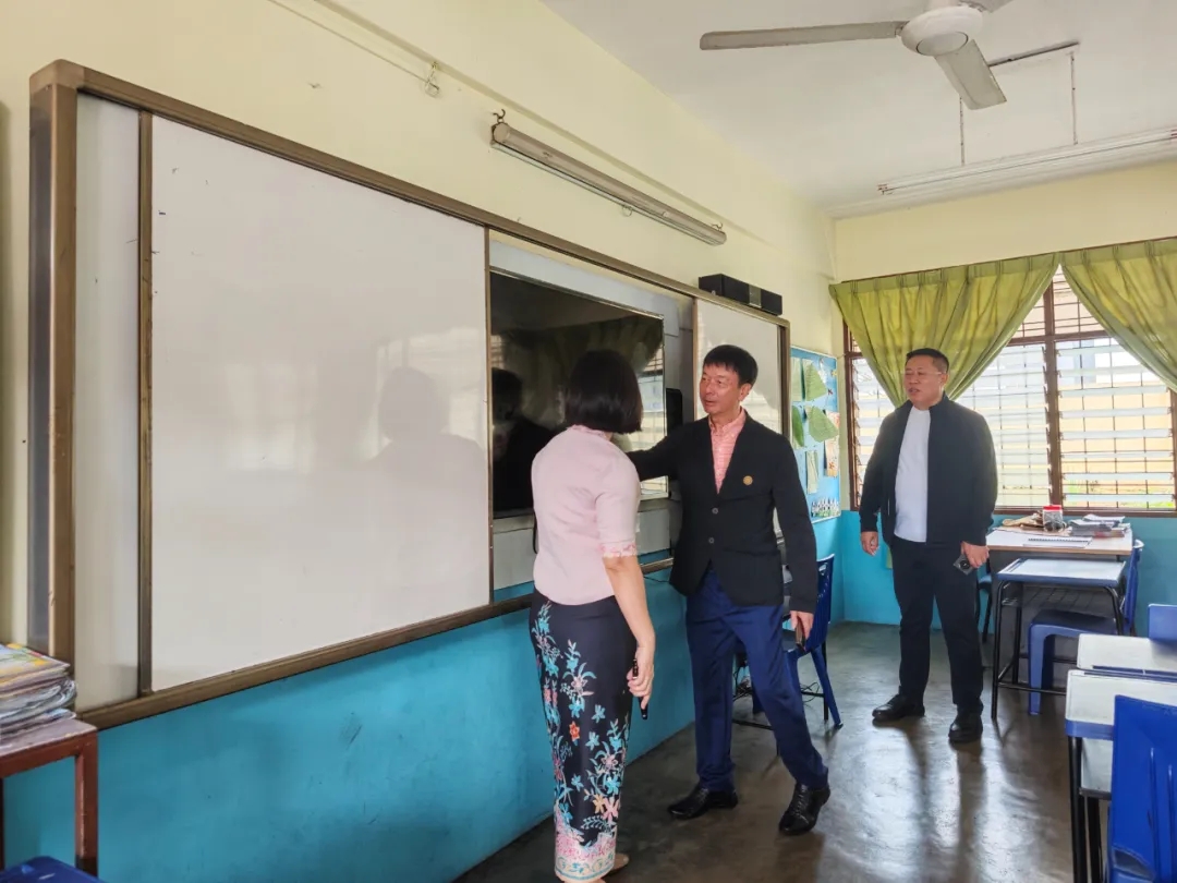 彭錦環(huán)總裁一行在相關(guān)校領(lǐng)導(dǎo)的陪同下,先后參觀調(diào)研了無拉港華文學(xué)校、騰比國際學(xué)校Setia Eco Park校區(qū)、安新華文學(xué)校,并重點(diǎn)關(guān)注了馬來西亞國際學(xué)校對(duì)智慧教室、個(gè)性化學(xué)習(xí)平臺(tái)及AI教學(xué)工具的應(yīng)用實(shí)踐。