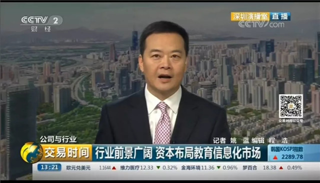 7月27日,CCTV財經(jīng)頻道《交易時間》欄目大篇幅報道心里程集團的教育信息化解決方案。