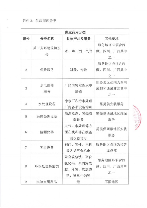 為規(guī)范西藏國策環(huán)保科技股份有限公司(以下簡稱國策環(huán)?;蚬荆┎少徯袨?,加強采購管理,維護公司采購當事人的合法權(quán)益,更好地與廣大供應(yīng)商合作,依據(jù)公司采購管理、供應(yīng)商管理有關(guān)制度的規(guī)定,公司現(xiàn)征集采購供應(yīng)商入庫登記,以建立規(guī)范完整的供應(yīng)商信息庫。歡迎各企業(yè)(供應(yīng)商)踴躍入庫,現(xiàn)將有關(guān)事宜通知如下: