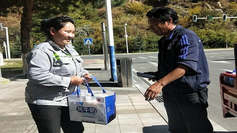 為感謝他們多年來的辛勤付出,國策環(huán)保林芝分公司相關(guān)人員向作業(yè)在一線的環(huán)衛(wèi)工人以每人80元的標(biāo)準(zhǔn),發(fā)放了當(dāng)?shù)靥禺a(chǎn)雪頓純牛奶、嘎瑪雞蛋、鹽等慰問品,共計274份。