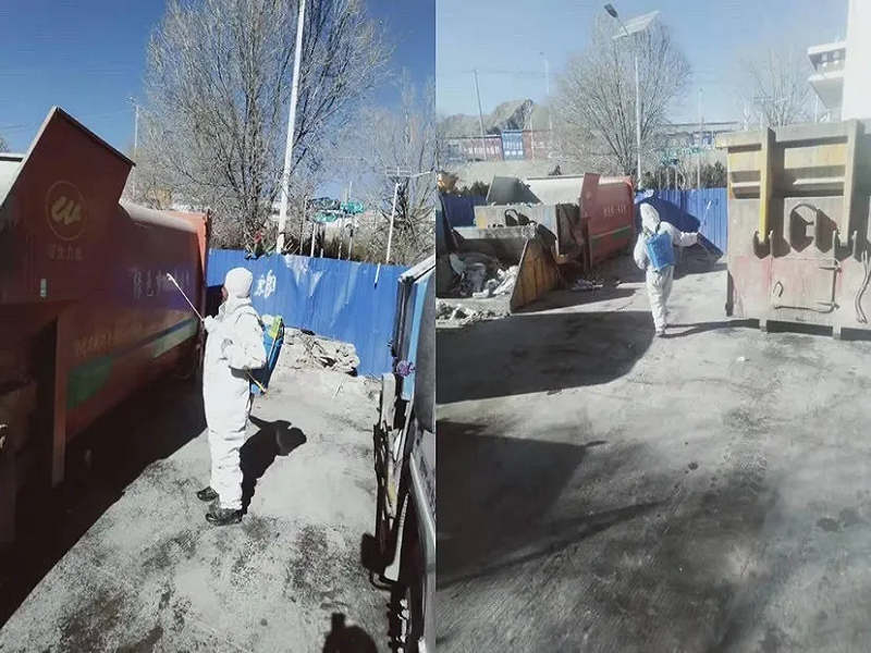 自疫情發(fā)生以來,國(guó)策環(huán)保林芝分公司一線環(huán)衛(wèi)工人們?cè)谧龊萌粘G鍧嵐ぷ鞯耐瑫r(shí)也多了一項(xiàng)工作——對(duì)街道環(huán)境及衛(wèi)生設(shè)施進(jìn)行消毒工作。