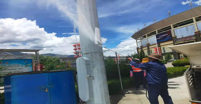 同時,山南分公司還調(diào)配了15名員工、1輛高壓沖洗車、1輛灑水車、1輛洗掃車、1輛多功能沖洗車組成了體育場臨時清洗隊(duì),對體育場垃圾桶、電樁小廣告、周邊雜草以及地面等進(jìn)行了集中清理,通過采取高壓水槍沖洗和人工擦拭相結(jié)合的方式,體育場周圍環(huán)境及設(shè)施煥然一新,顯露“本色”。