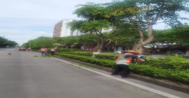 2、安排修剪人員對(duì)興東路、民族路、新華路、長(zhǎng)湖路、東盟大道、友好大道、北侖大道、高興大道、濱海大道、竹山進(jìn)港大道等綠化面積進(jìn)行修剪,統(tǒng)一修枝整形,出動(dòng)650人次、修剪綠化帶25條,清運(yùn)78車次,共修剪約14萬平方米。